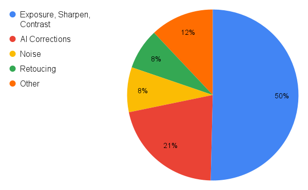 - Exposure, Sharpen, Super Contrast – these are the core of most corrections and make up about half the overall processing time.